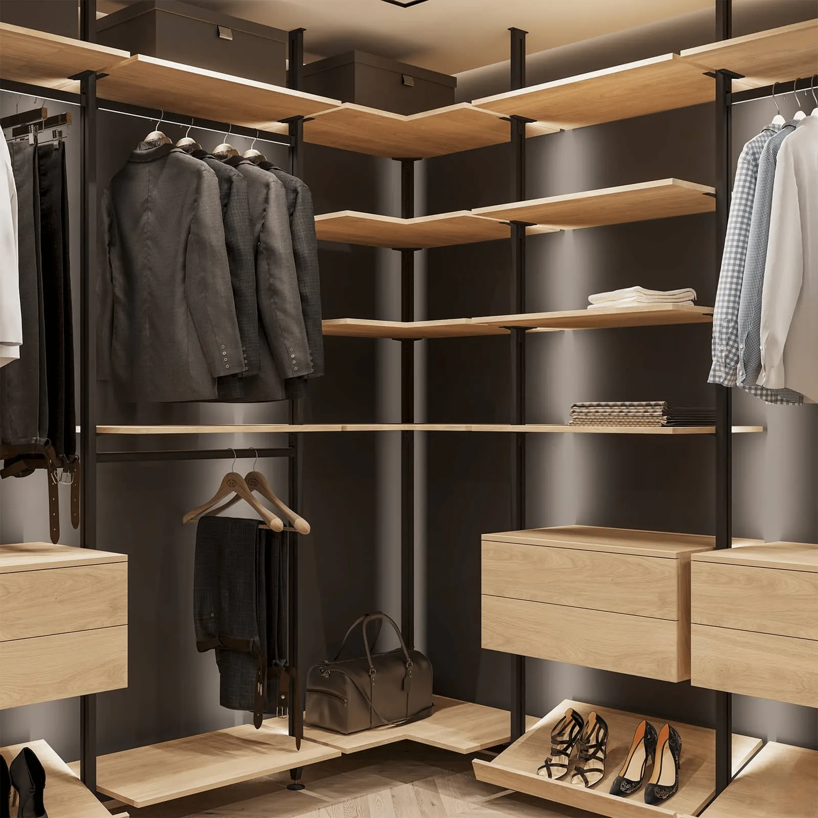 СТЕЛЛАЖНАЯ ГАРДЕРОБНАЯ СИСТЕМА Г-ОБРАЗНАЯ КОНФИГУРАЦИЯ 2
