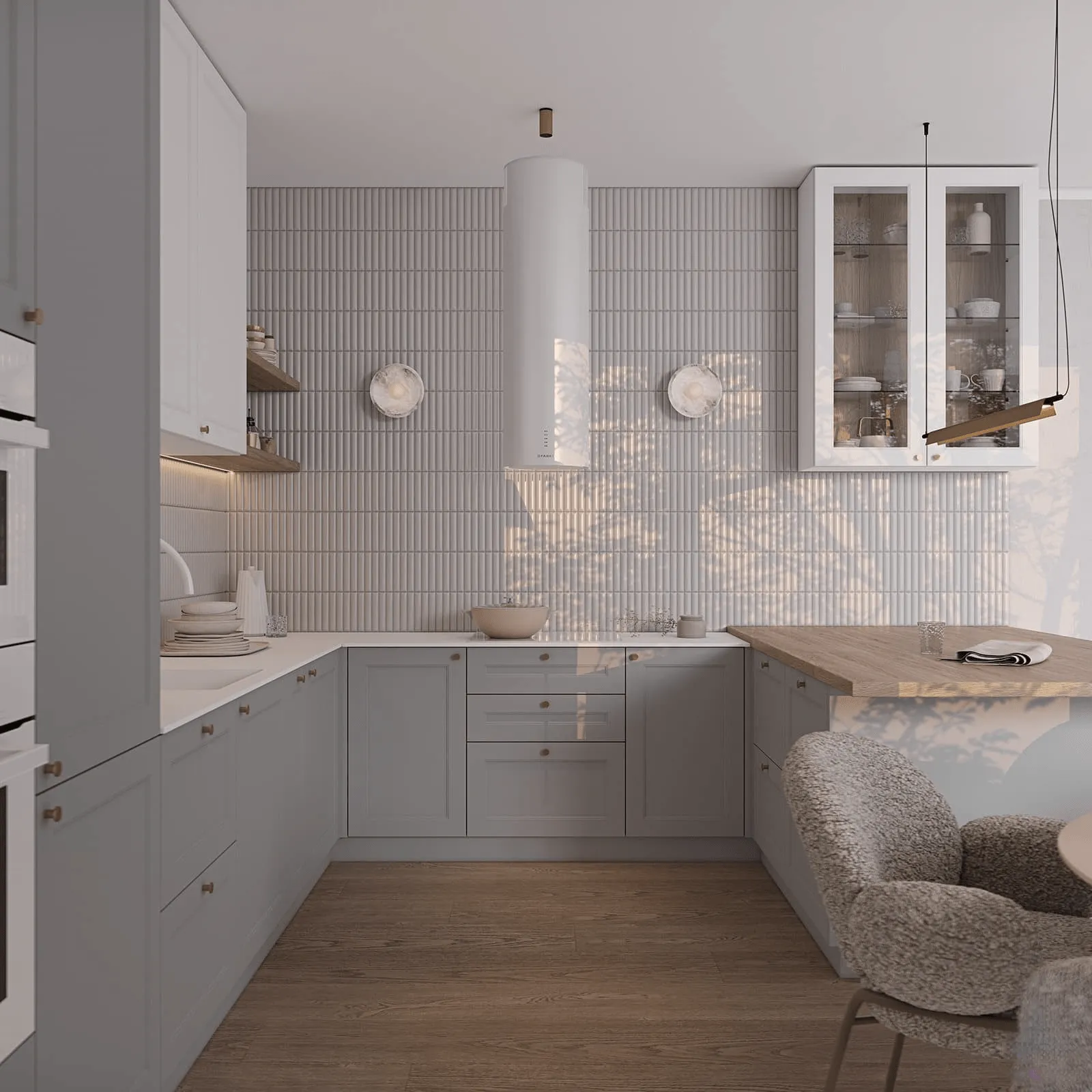 Кухня ЛИЯ олицетворяет собой искусство сочетания функциональности и эстетического восхищения.Фасады МДФ, окрашенные в нежные приглушенные оттенки, придают ей особый шарм и необычность. Они привлекают внимание и создают атмосферу спокойствия и вдохновения. А имитация филенки в стиле неоклассика, которая присутствует на этой кухне, добавляет особый шарм и неповторимость.