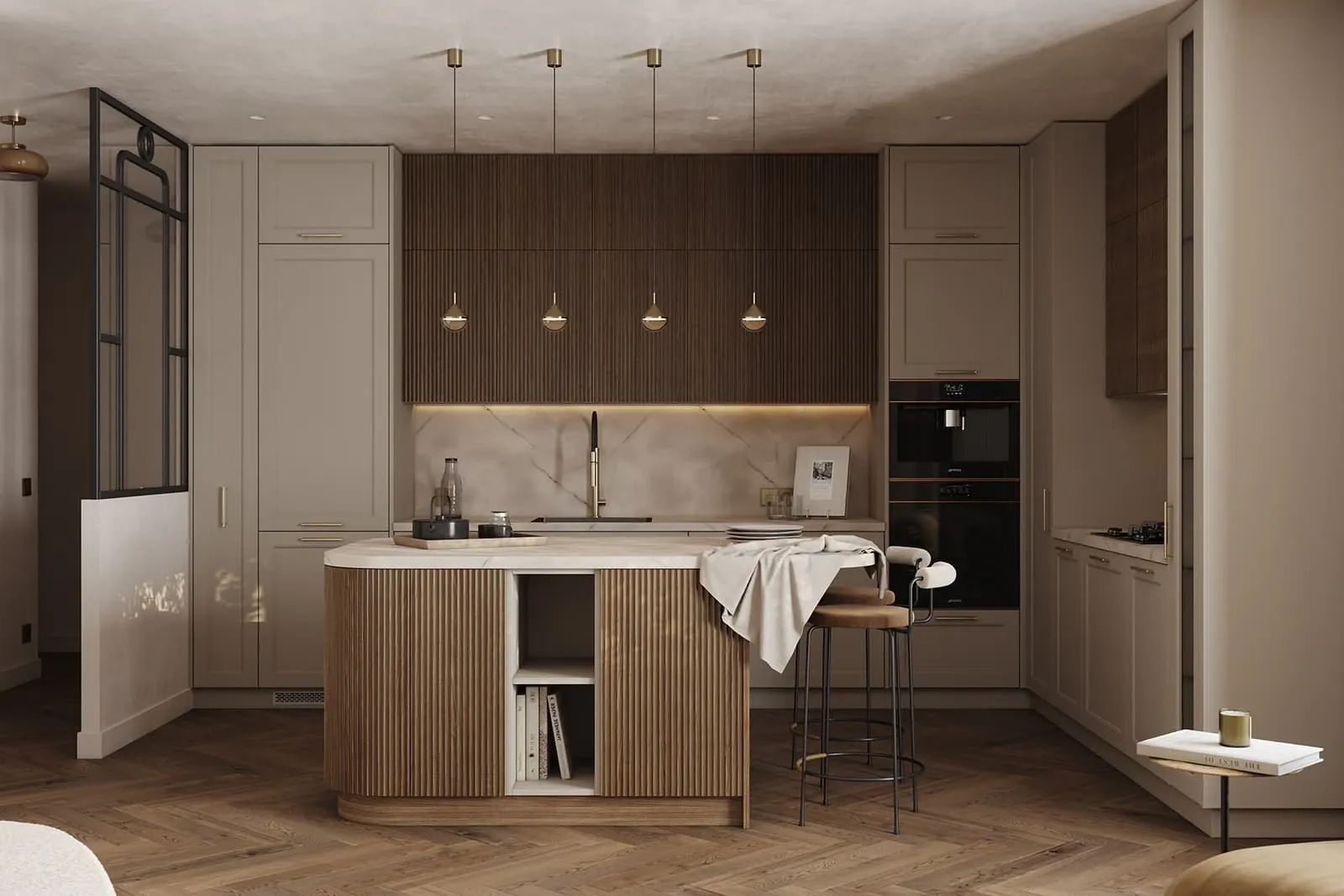 Фасады: Норвуд (МДФ/PET), цвет Ангора PET / Т433 Шпон дуба, цвет #111