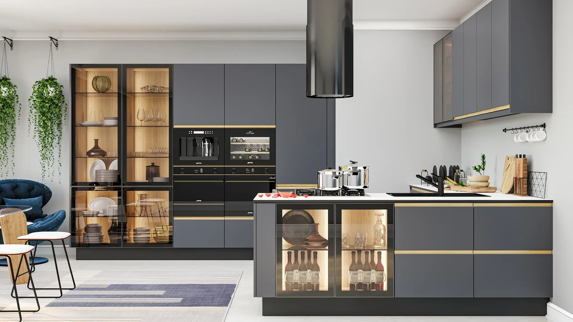 Механизмы открывания: петли Sensys (Hettich), петли Intermat (Hettich)+ push-to-open, направляющие ArciTech Atira (Hettich) цвет антрацит, карго (FGV)