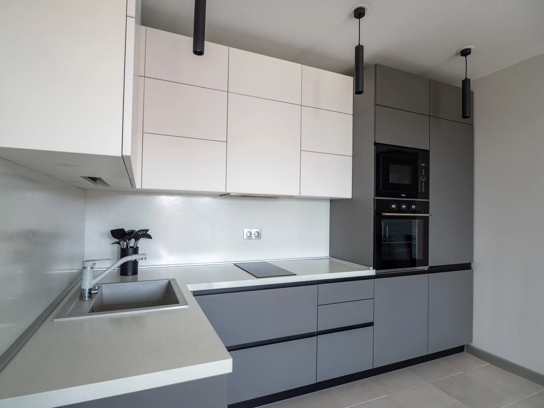 Фасады: МДФ Эмаль Система Оникс серый / МДФ Эмаль Система Белый супрамат