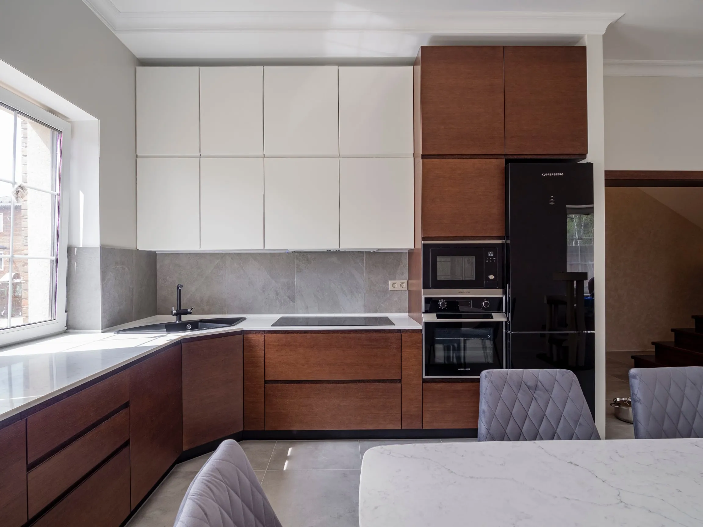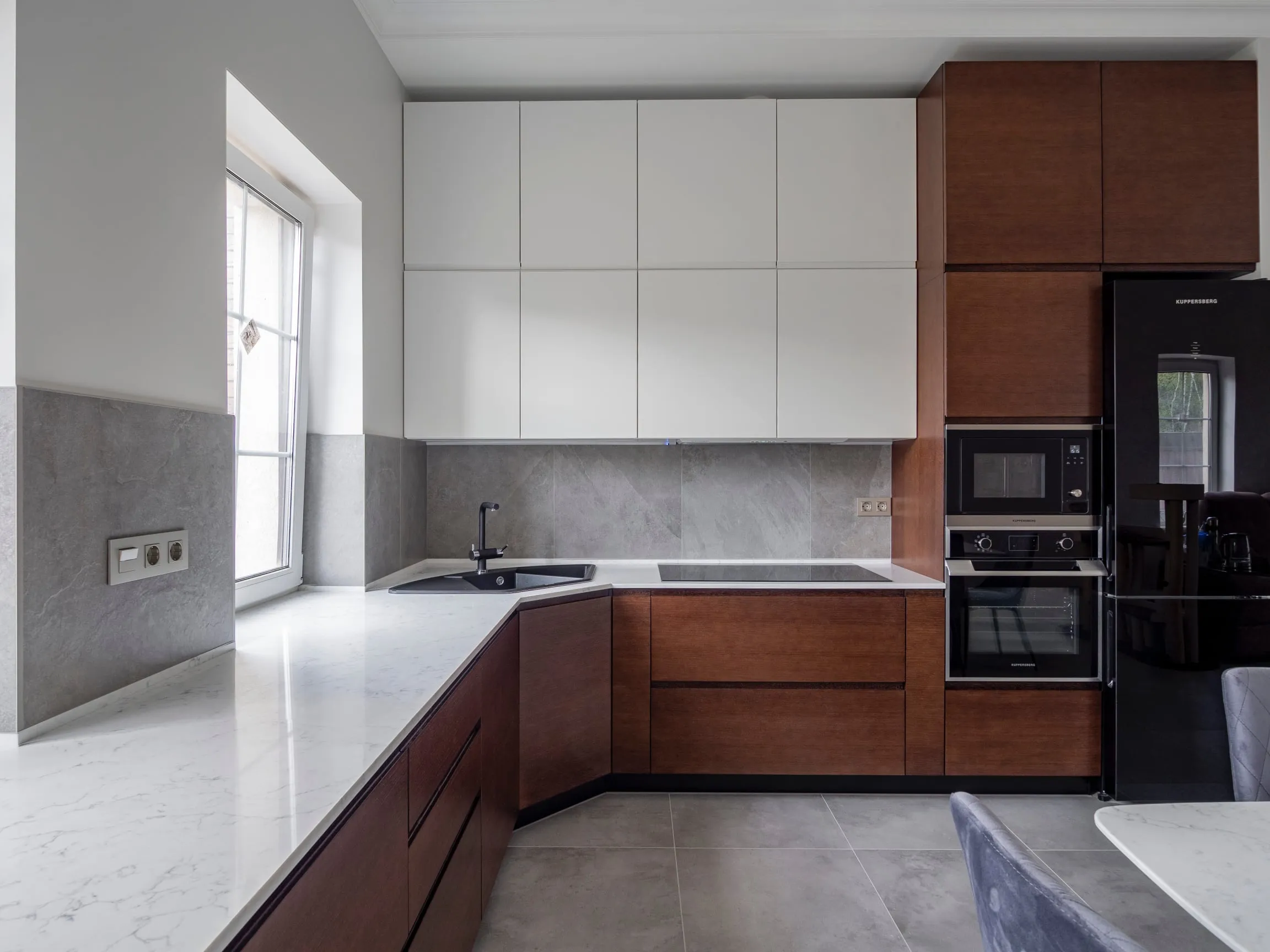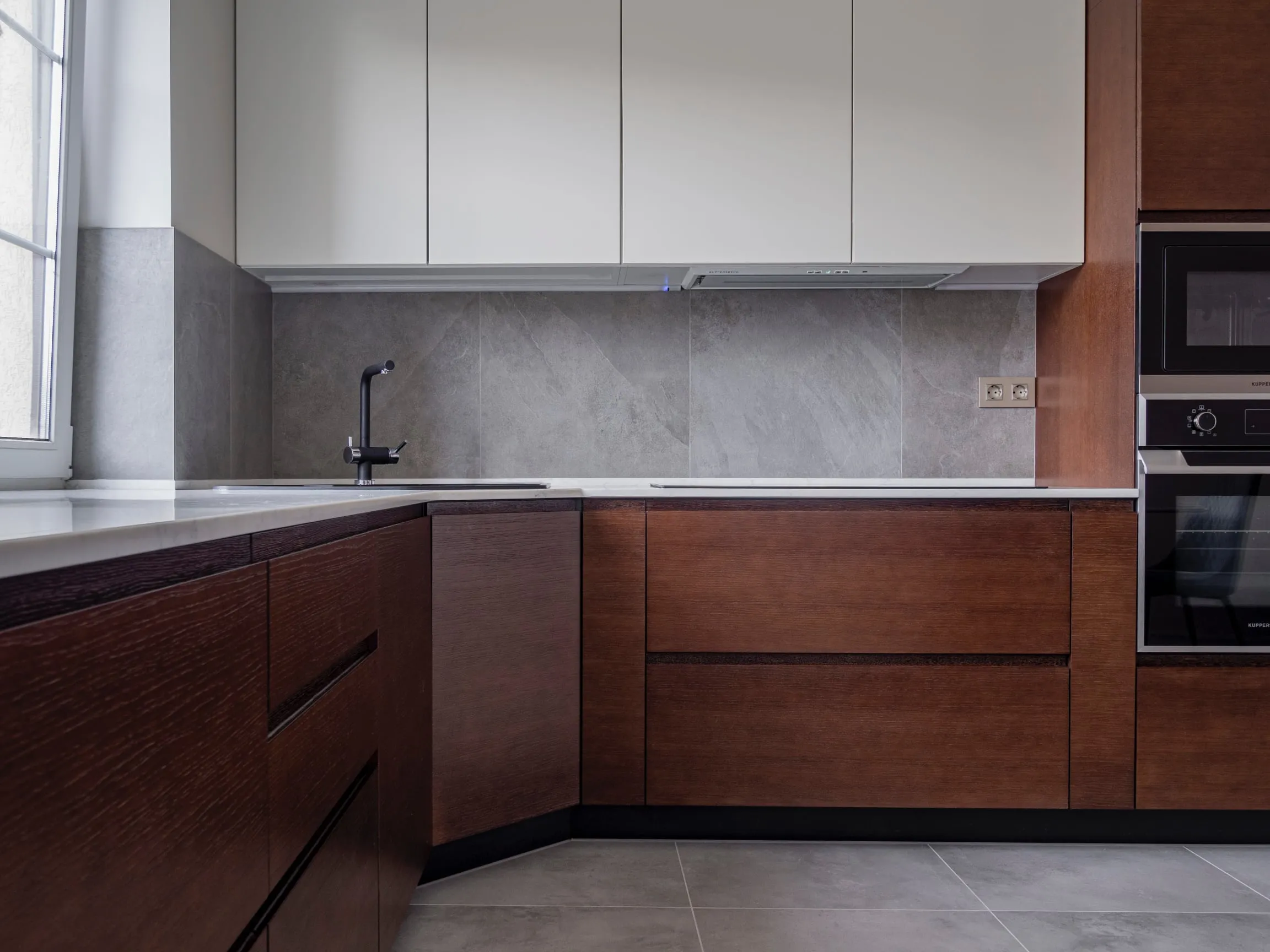 Фасады: ДСП Шпон дуба/ МДФ Эмаль Система Ral 9010 мат