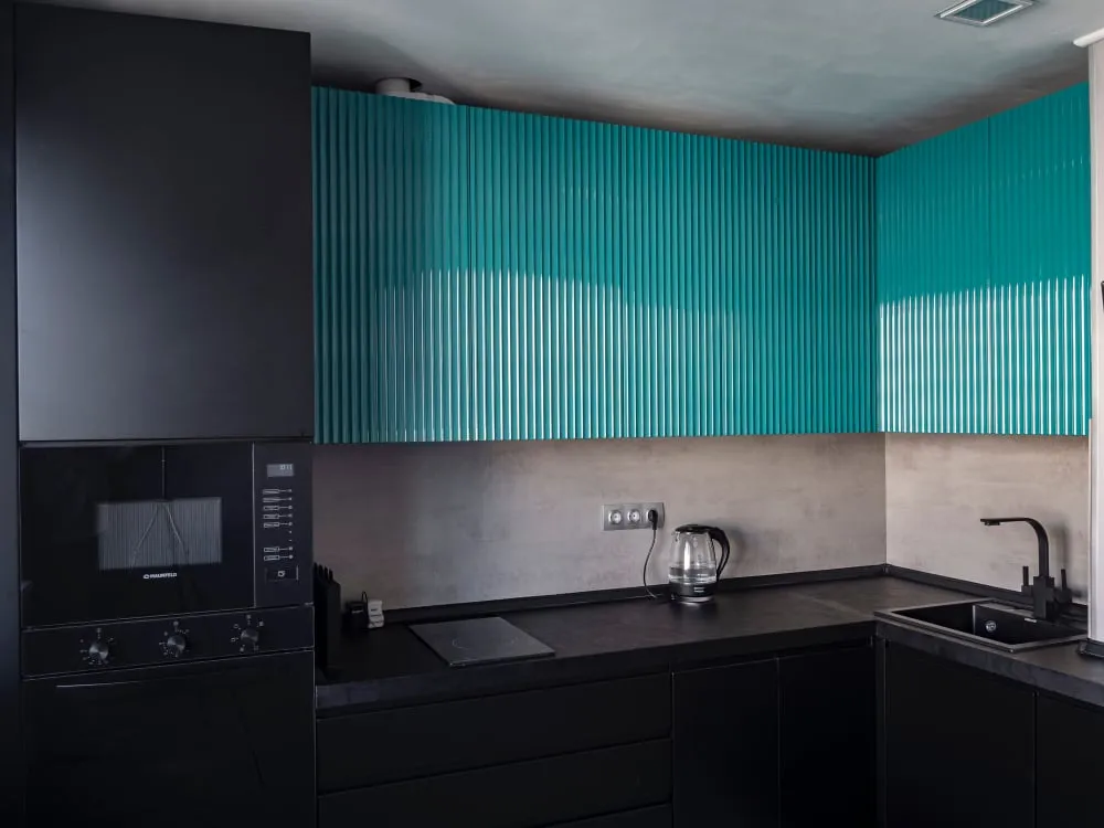 Фасады: МДФ Эмаль, Система RAL9005 мат / Т641 RAL5018гл