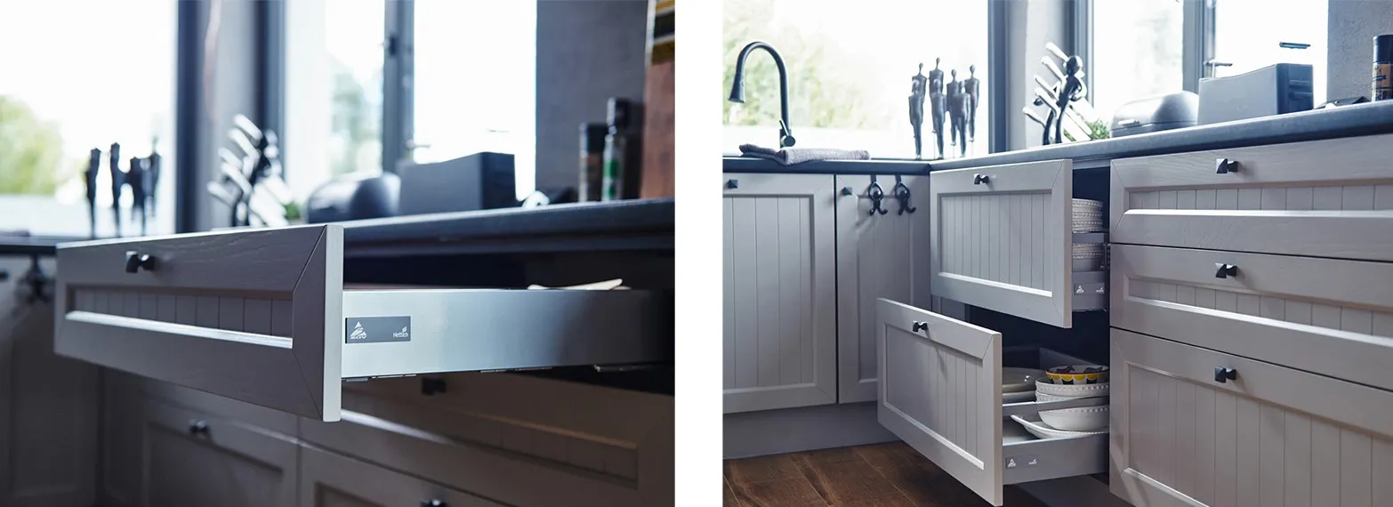 Если у вас на кухне установлены выдвижные ящики c системой InnoTech либо ArciTech от немецкого производителя Hettich, обратите внимание на заглушку, расположенную на металлической боковине выдвижной системы. Рядом с логотипом производителя должен располагаться логотип «ЗОВ».
