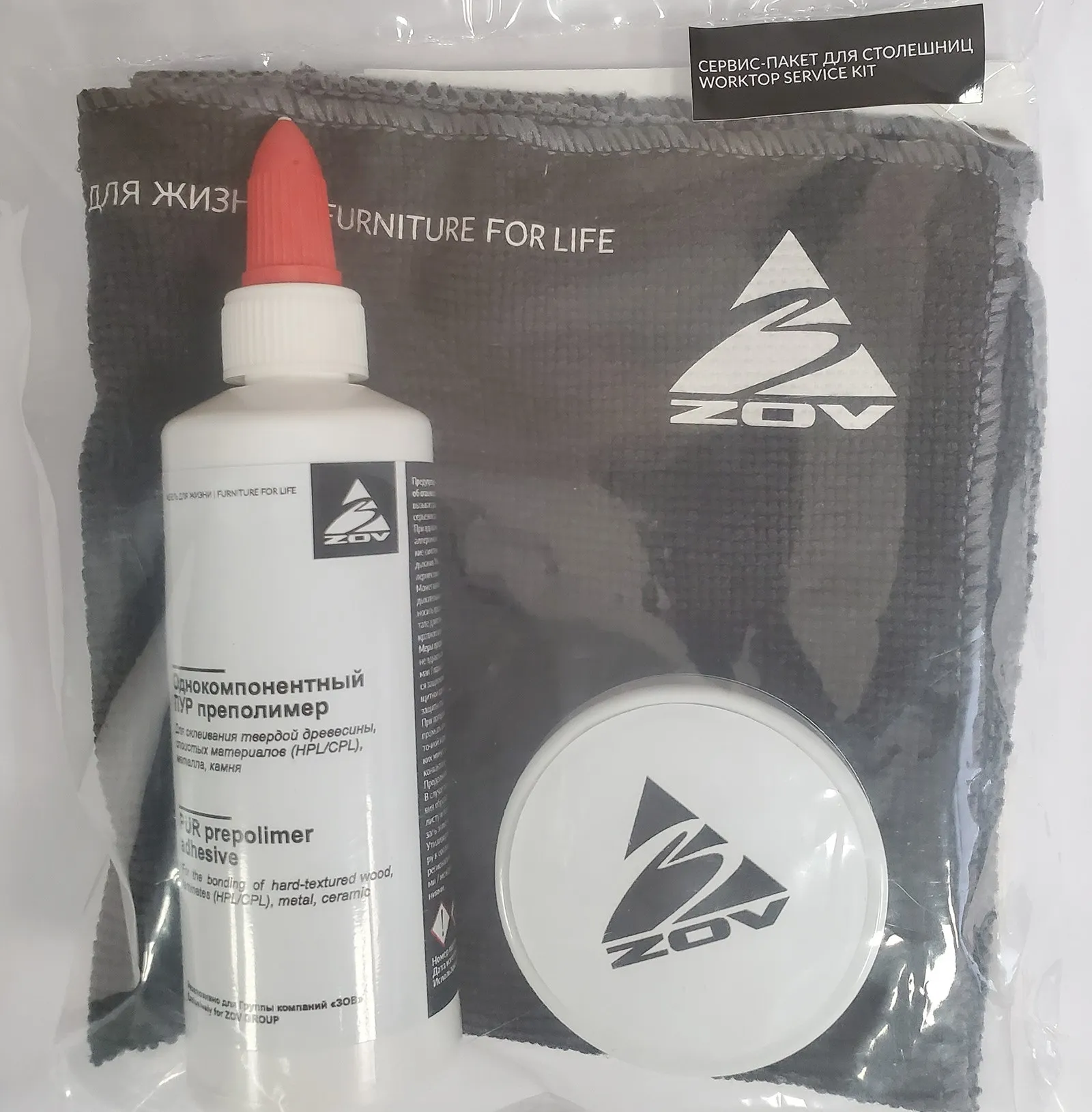 Столешницы фабричного производства имеют влагостойкую пропитку, которую можно узнать по зеленоватому оттенку ДСП на спиле, изготавливаются на современном высокотехнологичном оборудовании с применением только качественных материалов от ведущих мировых производителей. При заказе столешницы «ЗОВ» вы получаете сервис-пакет со специальными средствами (антиадгезивное средство и однокомпонентный ПУР-преполимер), а также салфеткой для дополнительной обработки открытых участков изделия (места врезки мойки, кранов, варочных поверхностей) от влаги, а также для соединения их между собой при монтаже. Все предметы сервис-пакета оформлены в узнаваемой стилистике «ЗОВ».